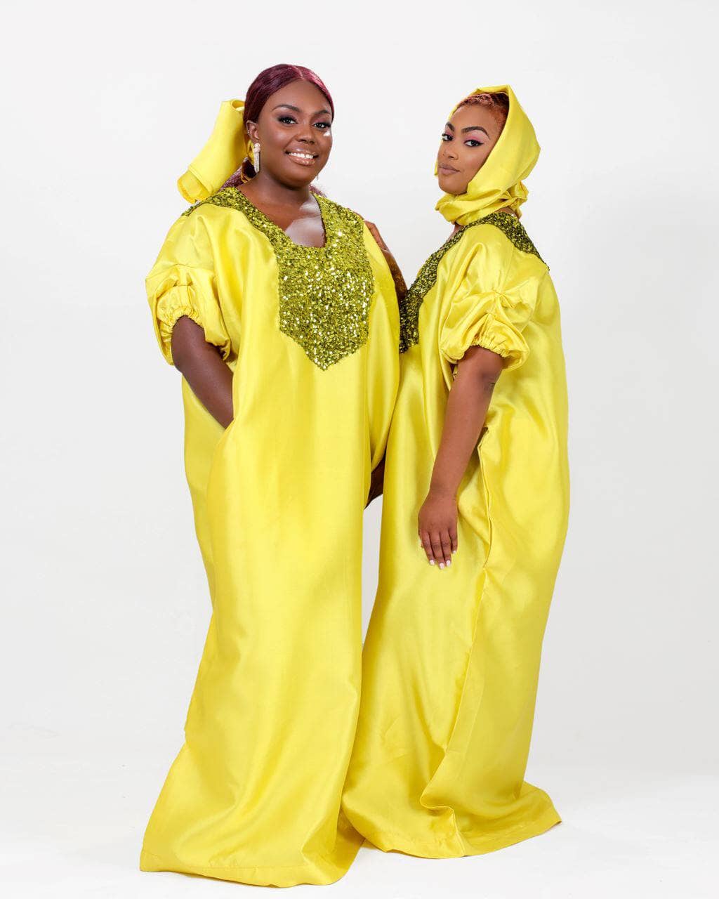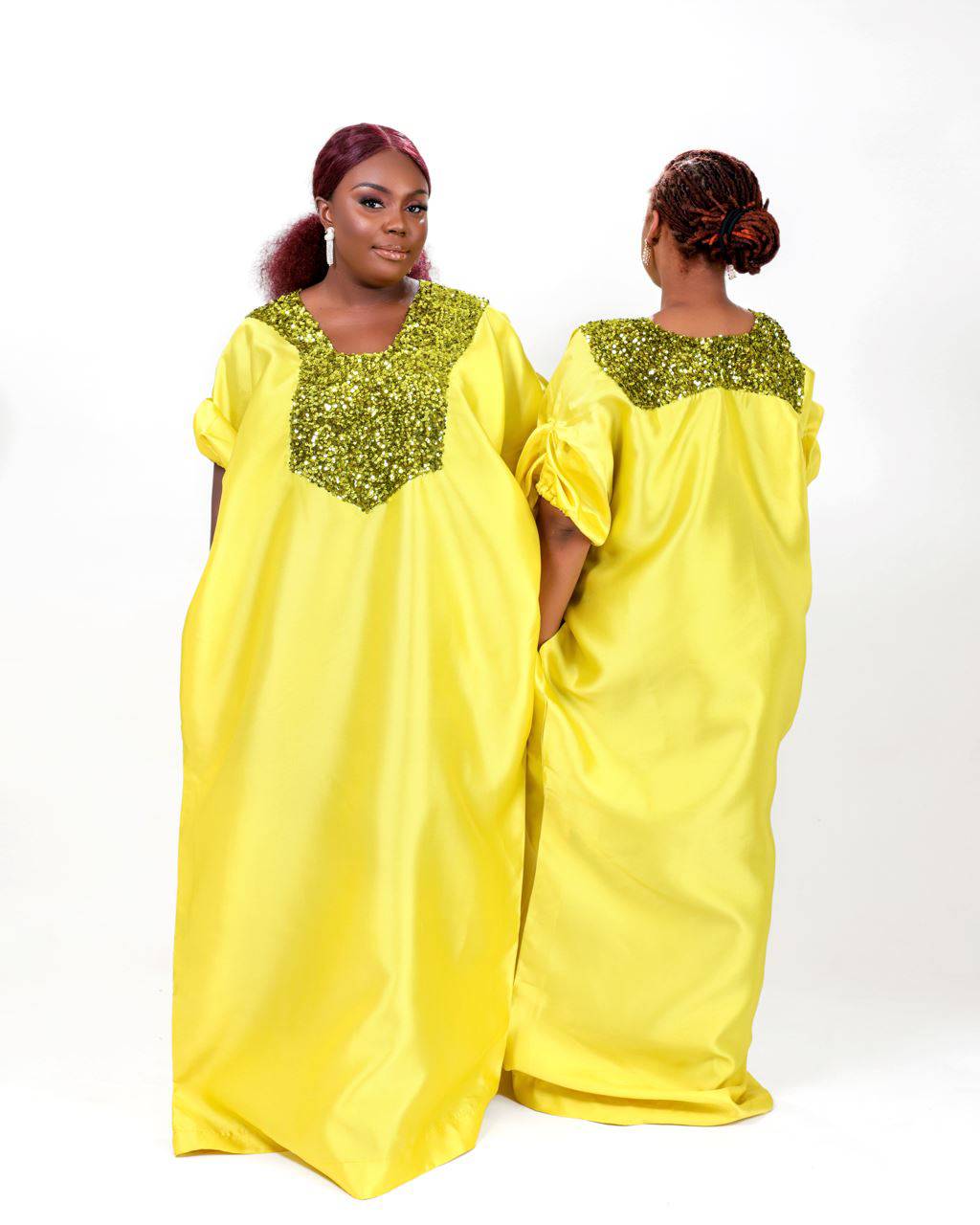 Our best seller Buga boubou Kaftan dress is a must have in your closet. Made with the finest silk. And perfect for your rich aunty era. It depicts the richness of the African culture. The front design of the dress is made with velvet sequin fabric that does both fade.
