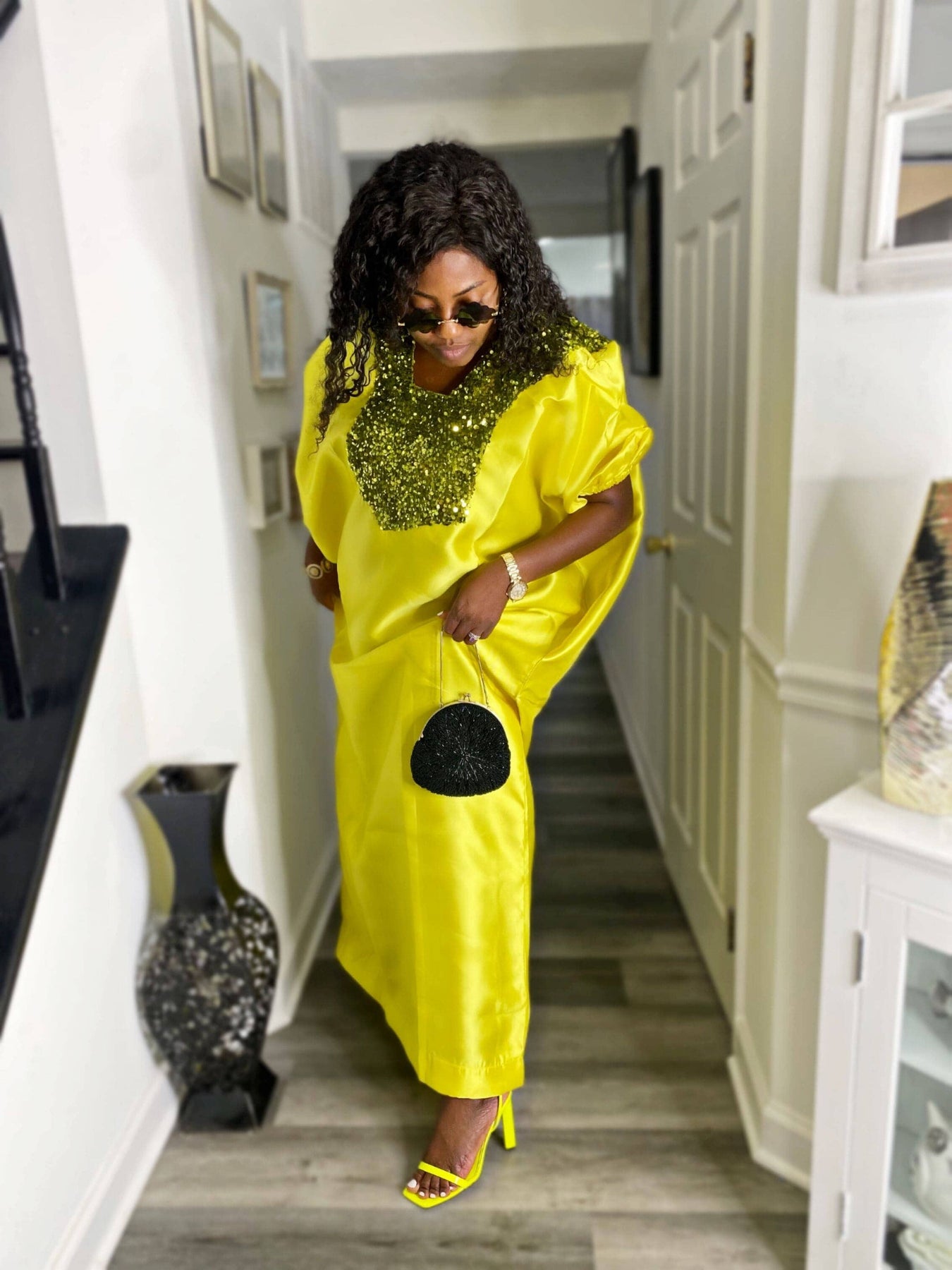 Buga Boubou (Neon)- African maxi dress with Silk fabric
