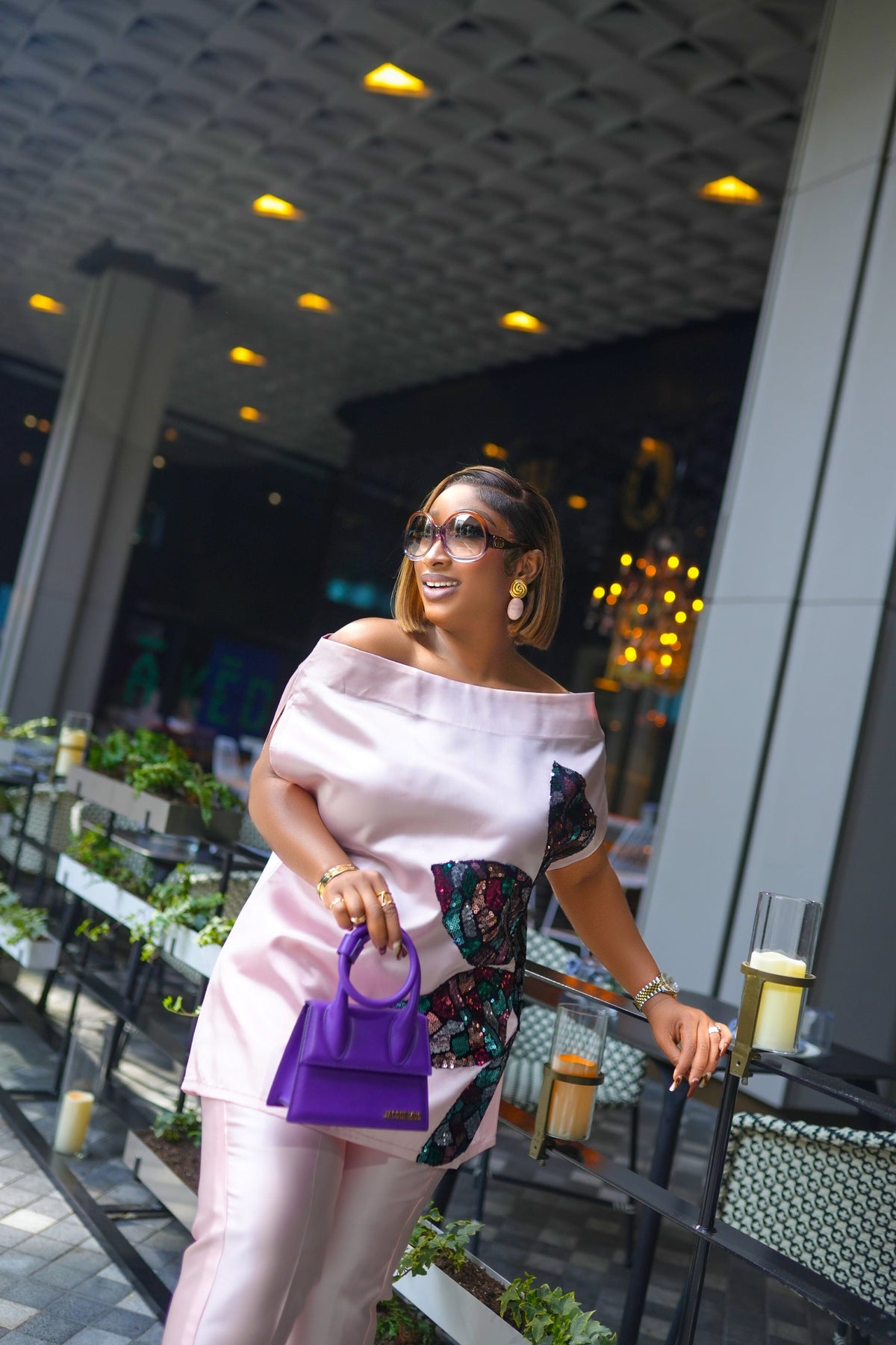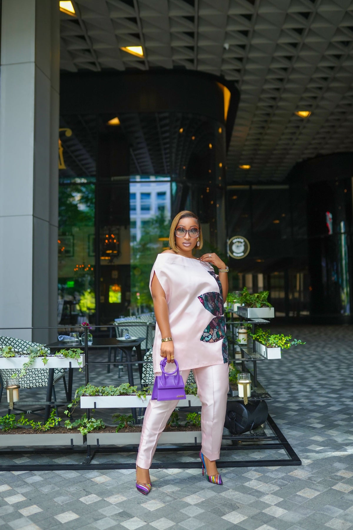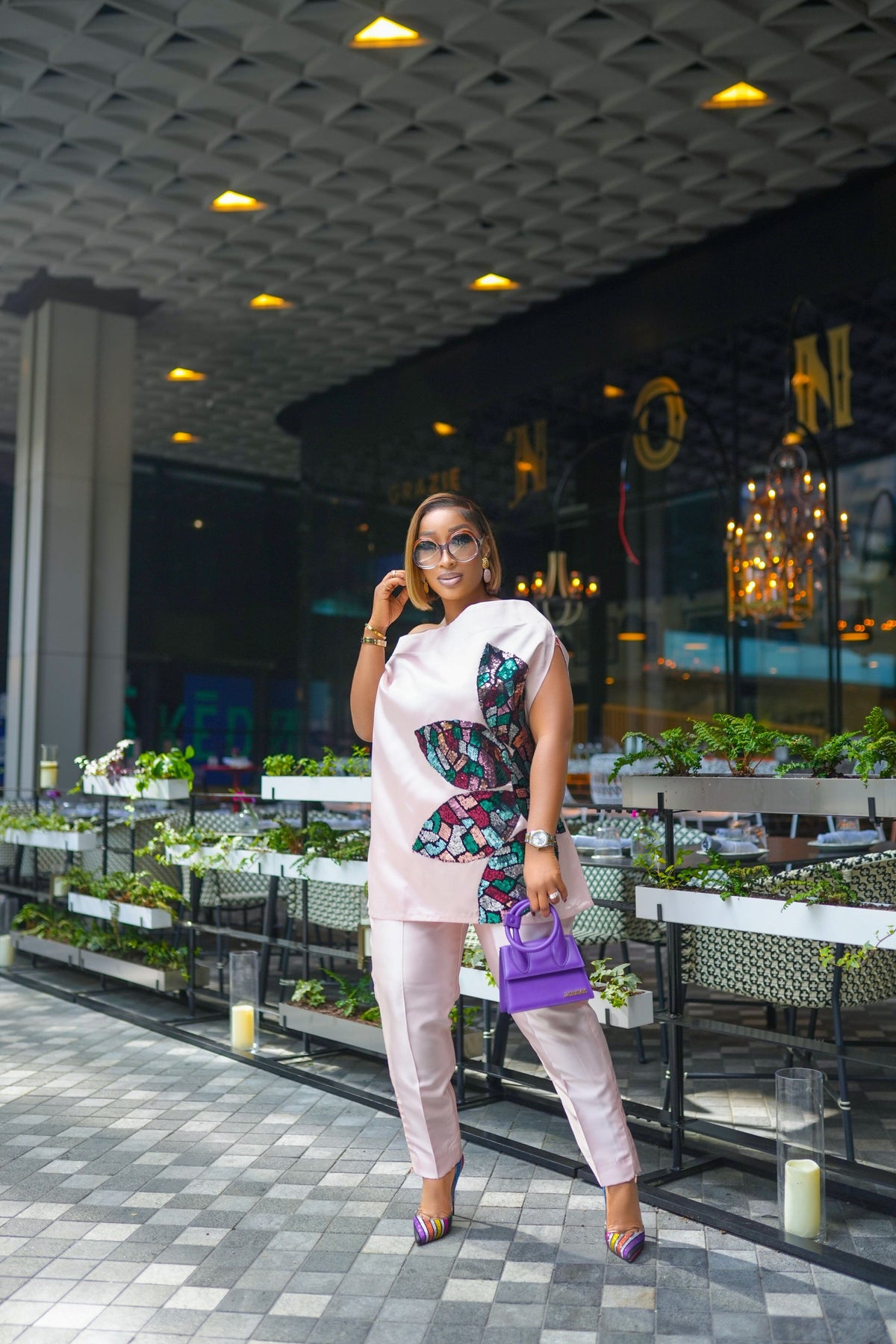 Goddess Pant set (Peach) - Mikado silk with multicolor sequin