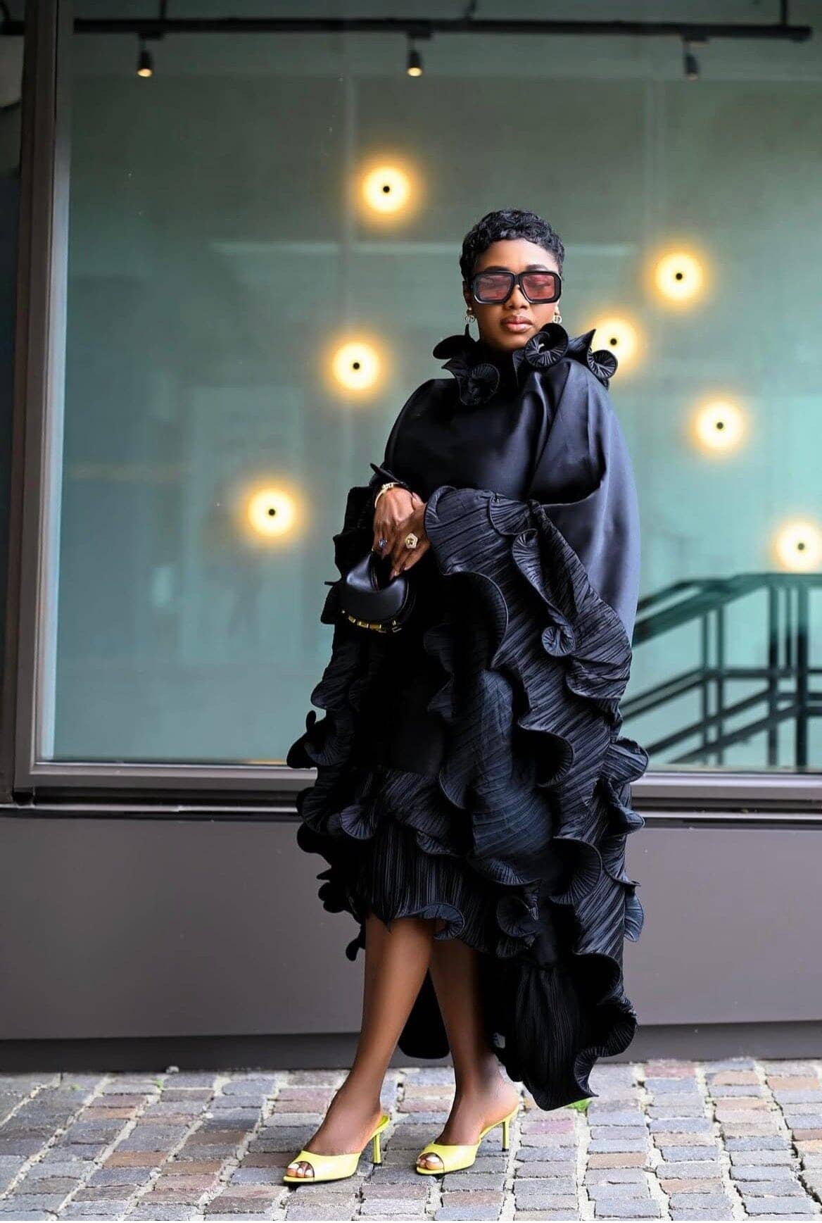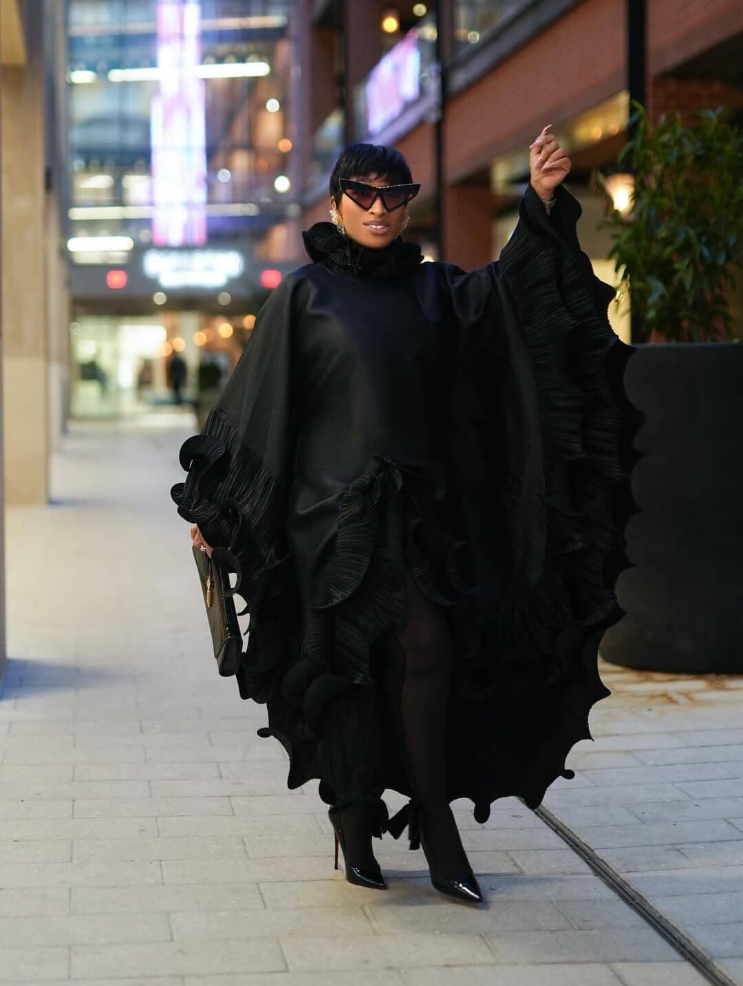 The Kai short boubou dress is made from luxurious mikado fabric and pleated fabrics around the hems. This dress is not snug but has a form fit.
