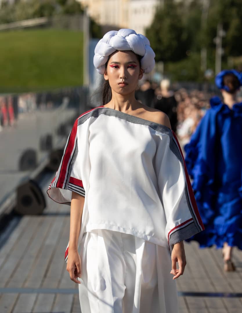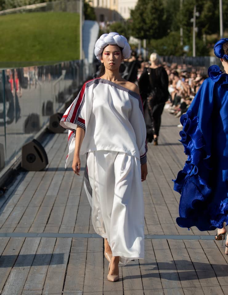 The gorgeous Yayo box top and culottes combo in white will make a striking impression at your next special event. This elegant two-piece ensemble, which combines quality mikado silk with native asooke cloth trim, strikes the ideal balance between modern fashion and African history.