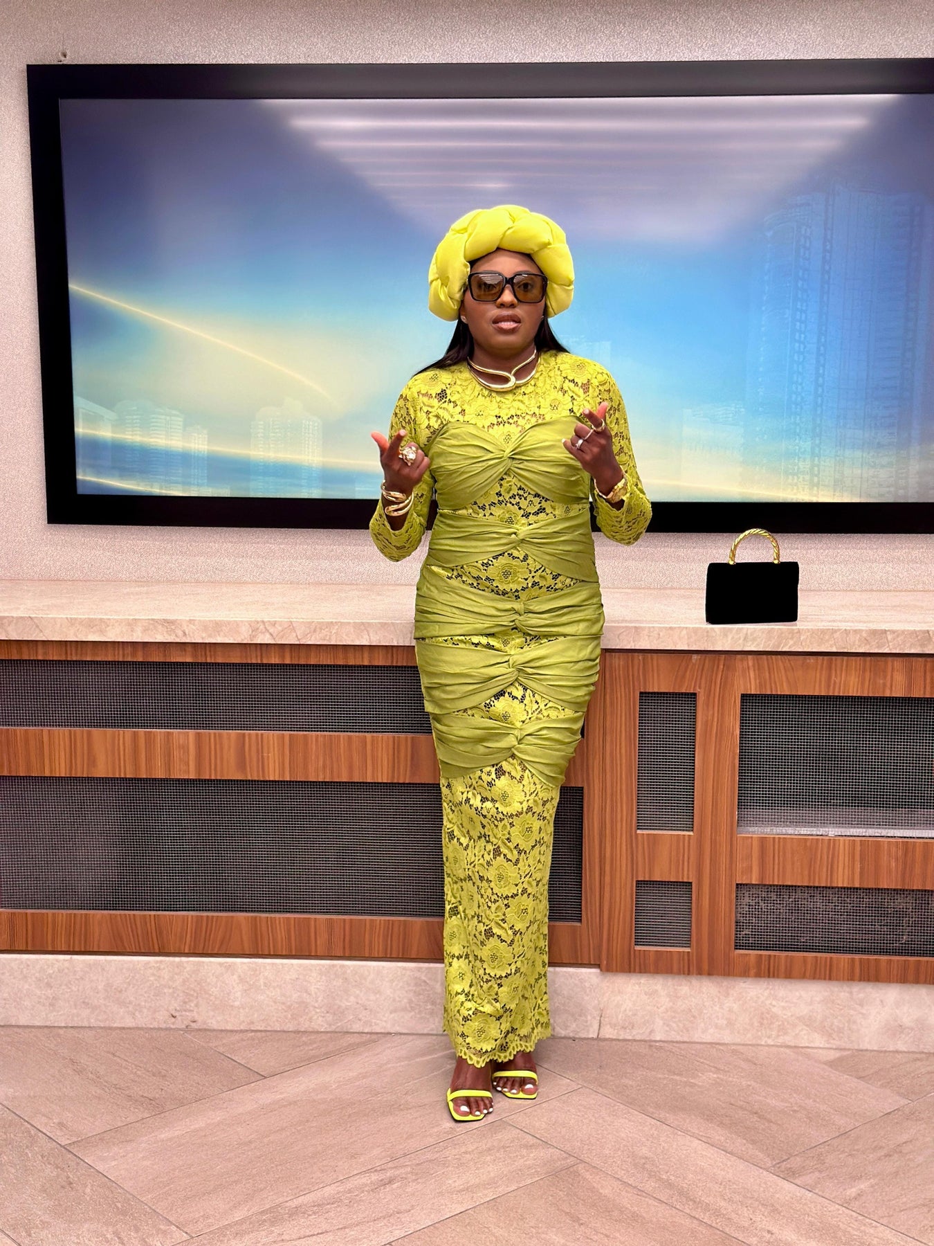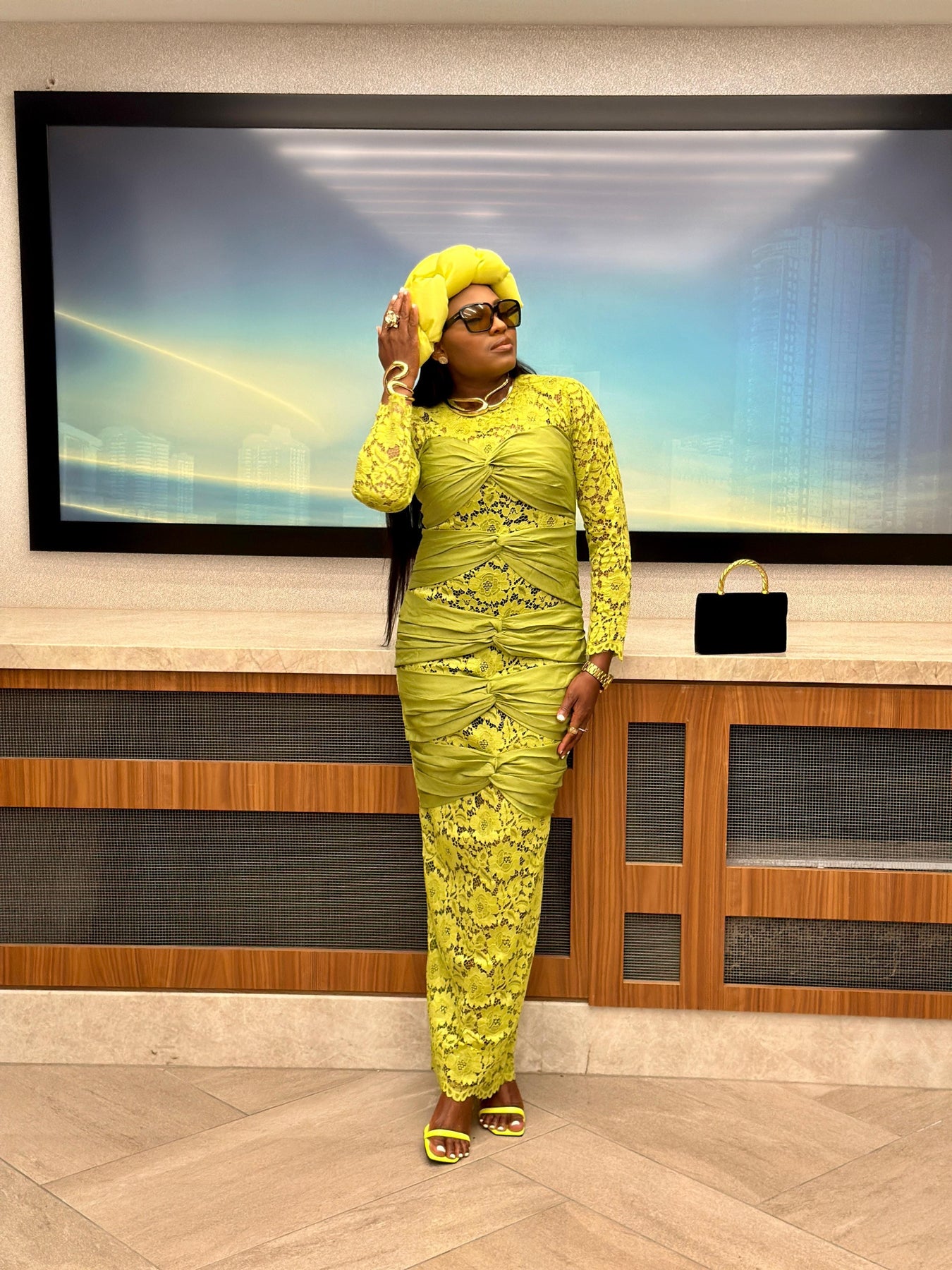 Ogechi long flowy dress - Chartreuse color