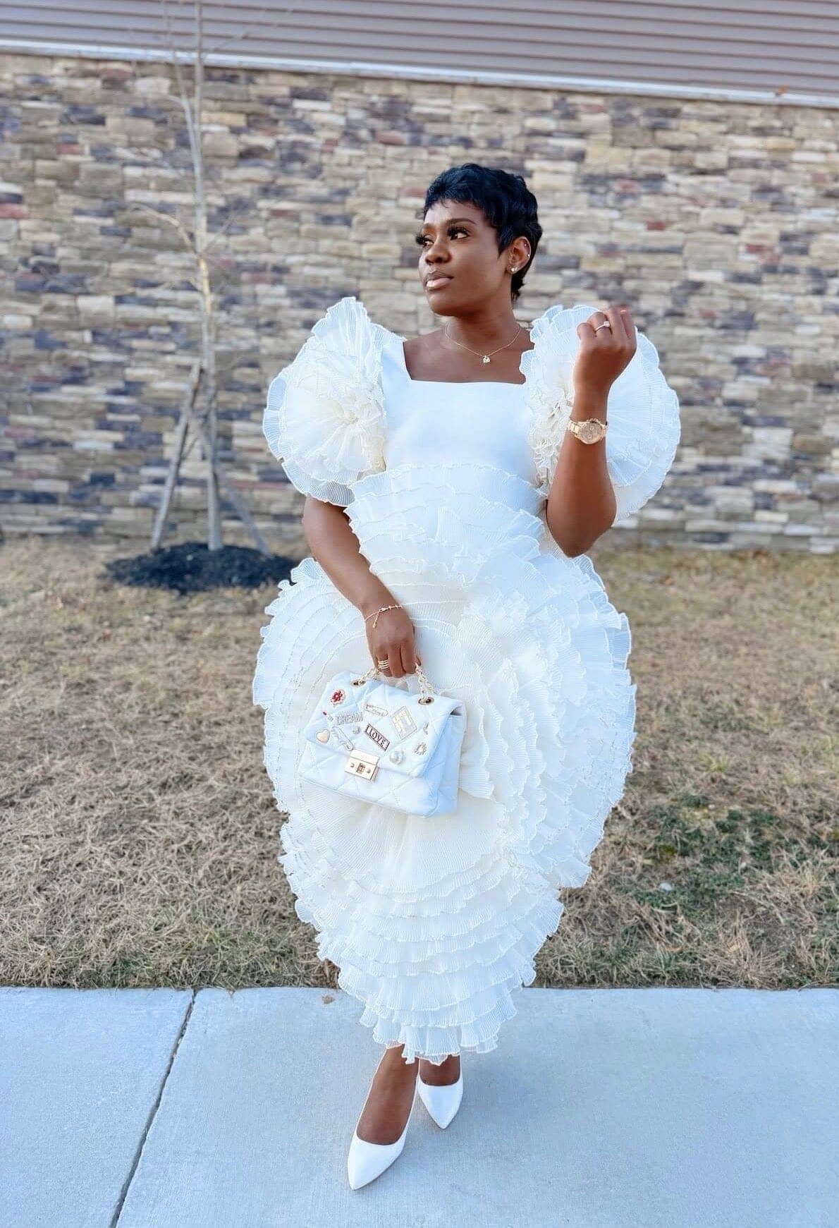 ROSETTE WHITE DRESS