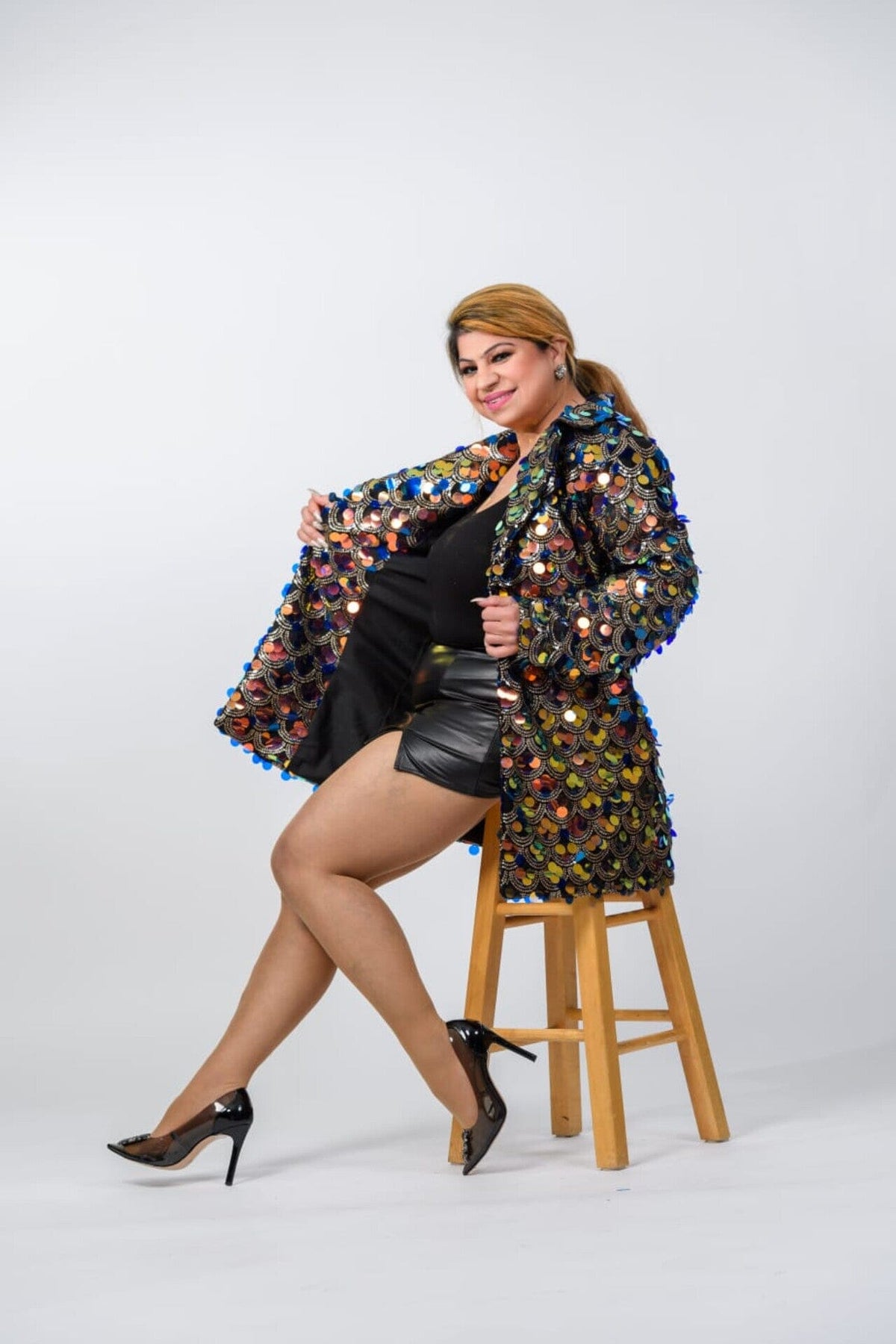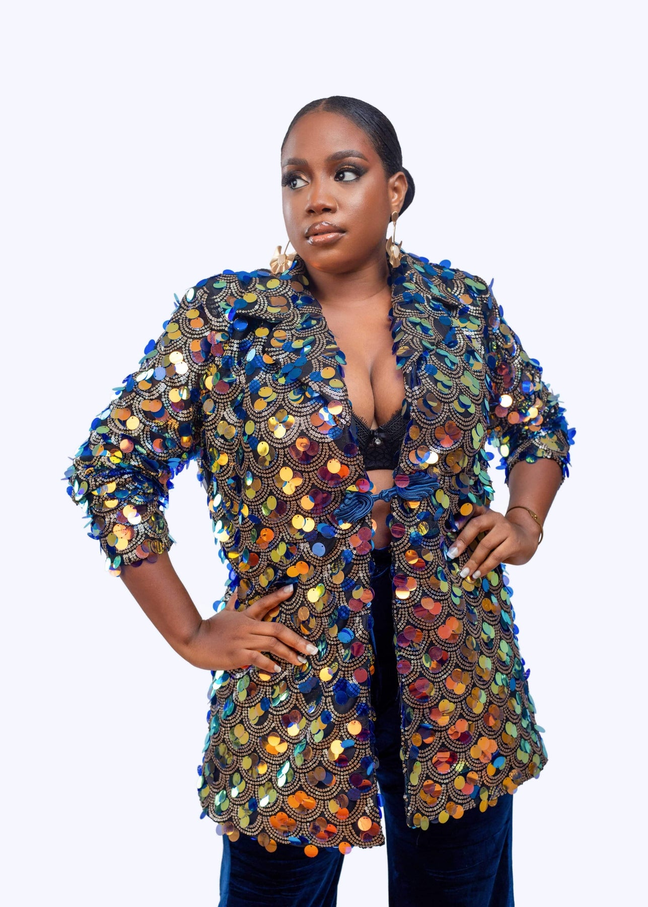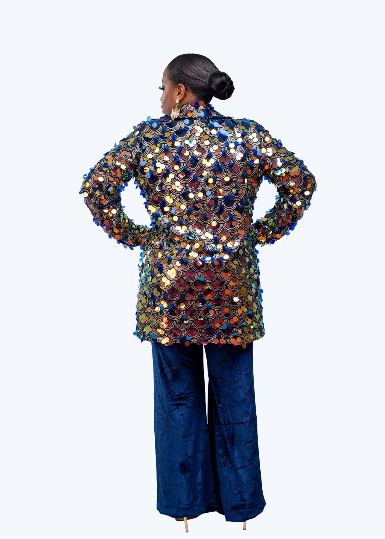 Introducing the Baller sequin boyfriend Jacket made with delicate singly tacked sequin fabric.