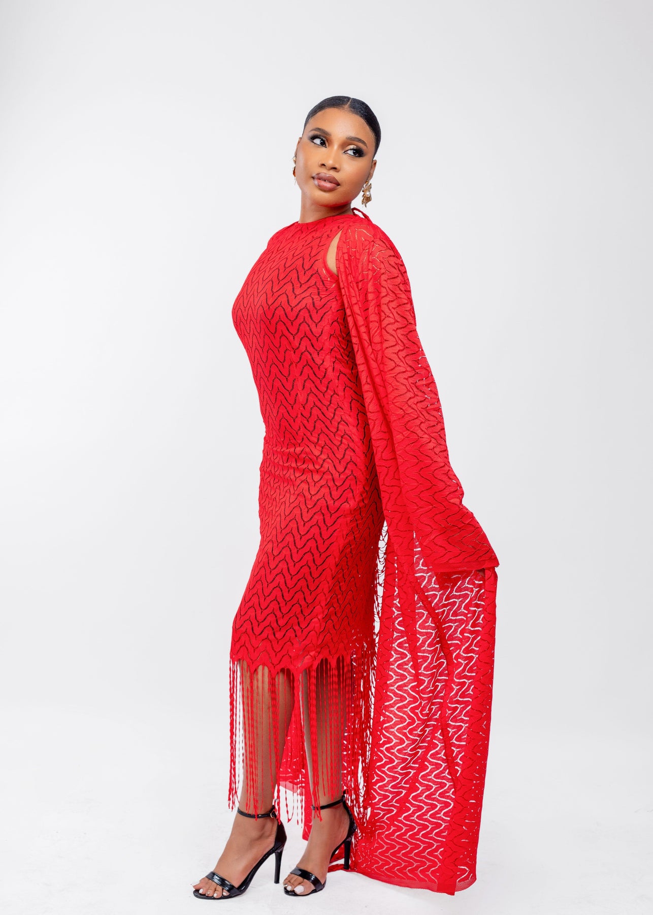 The MonaLisa 2 piece kimono and fitted fringe lace dress is the perfect outfit that can fit into multiple purposes.