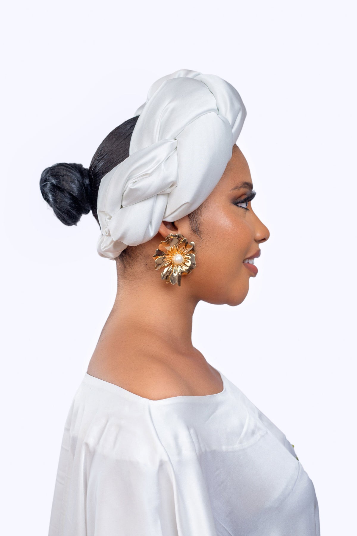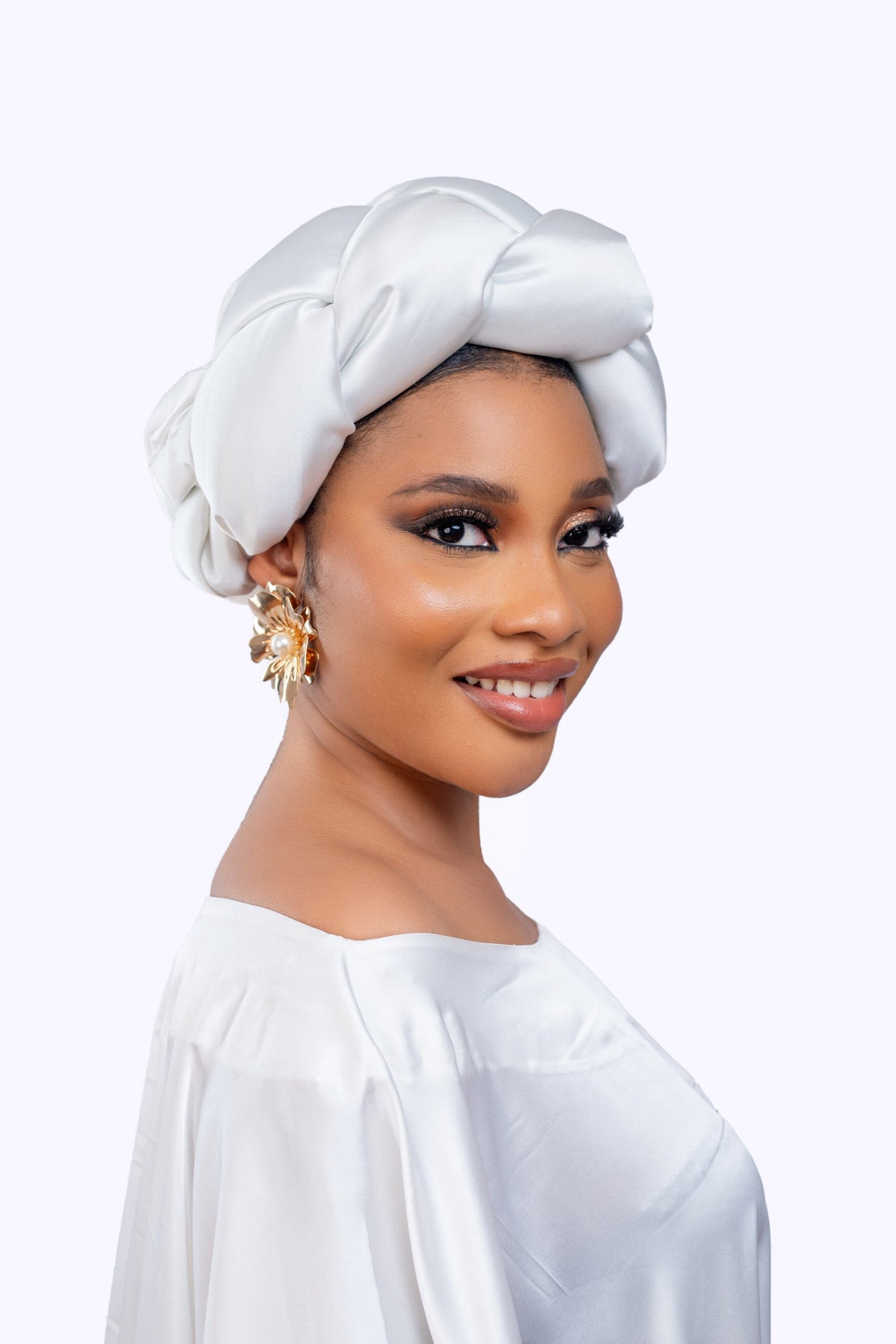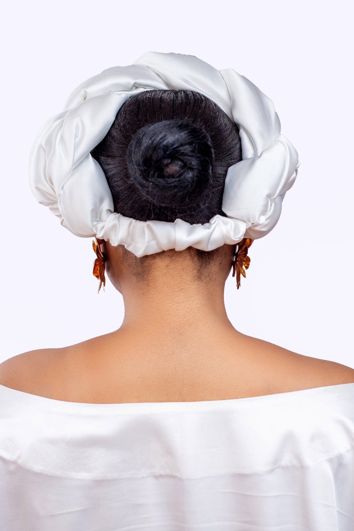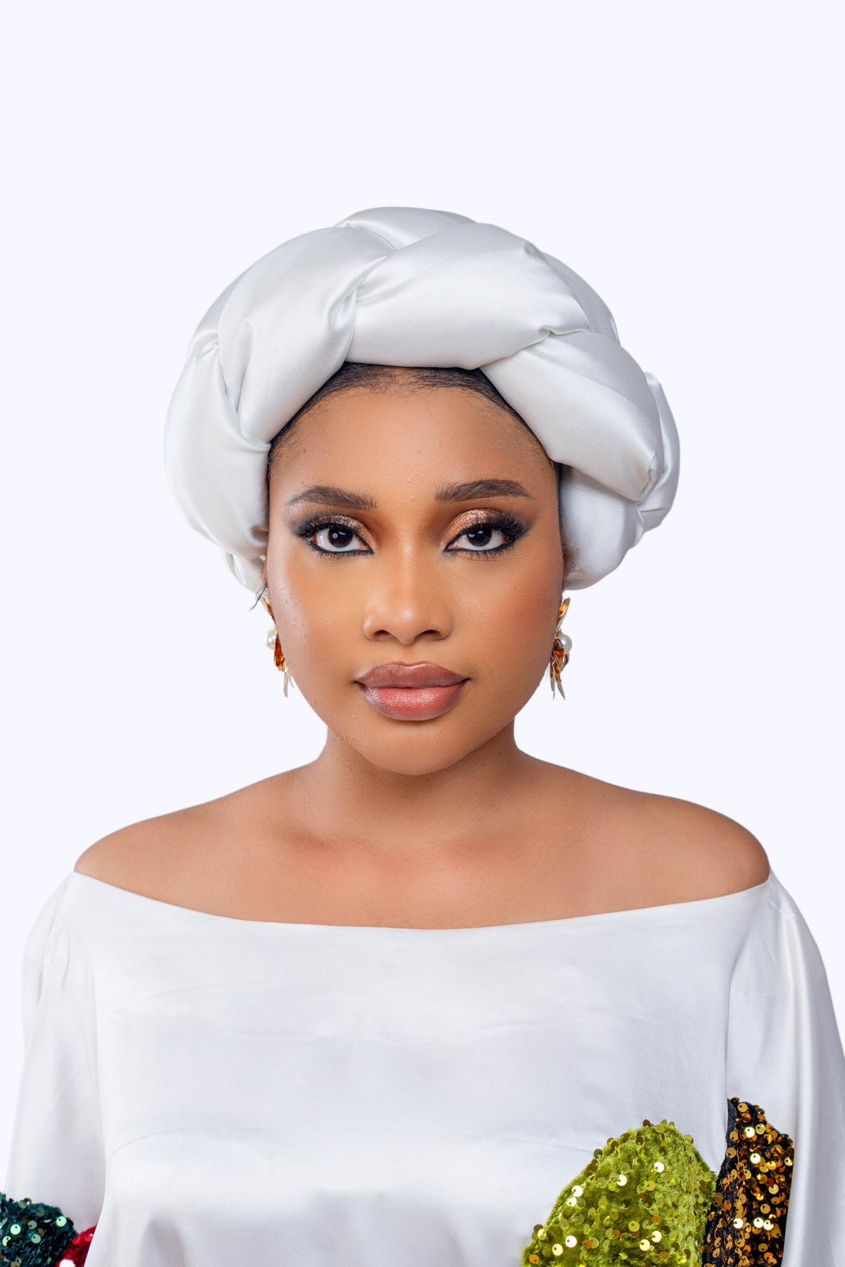Omoge Twist Silk Cap (White) -Women's African Cap