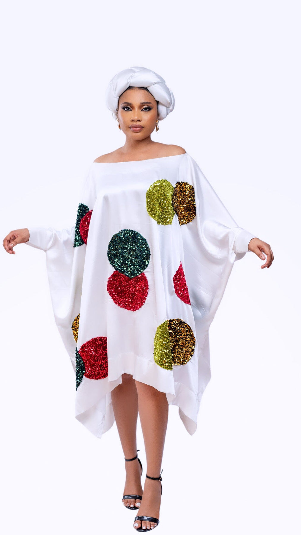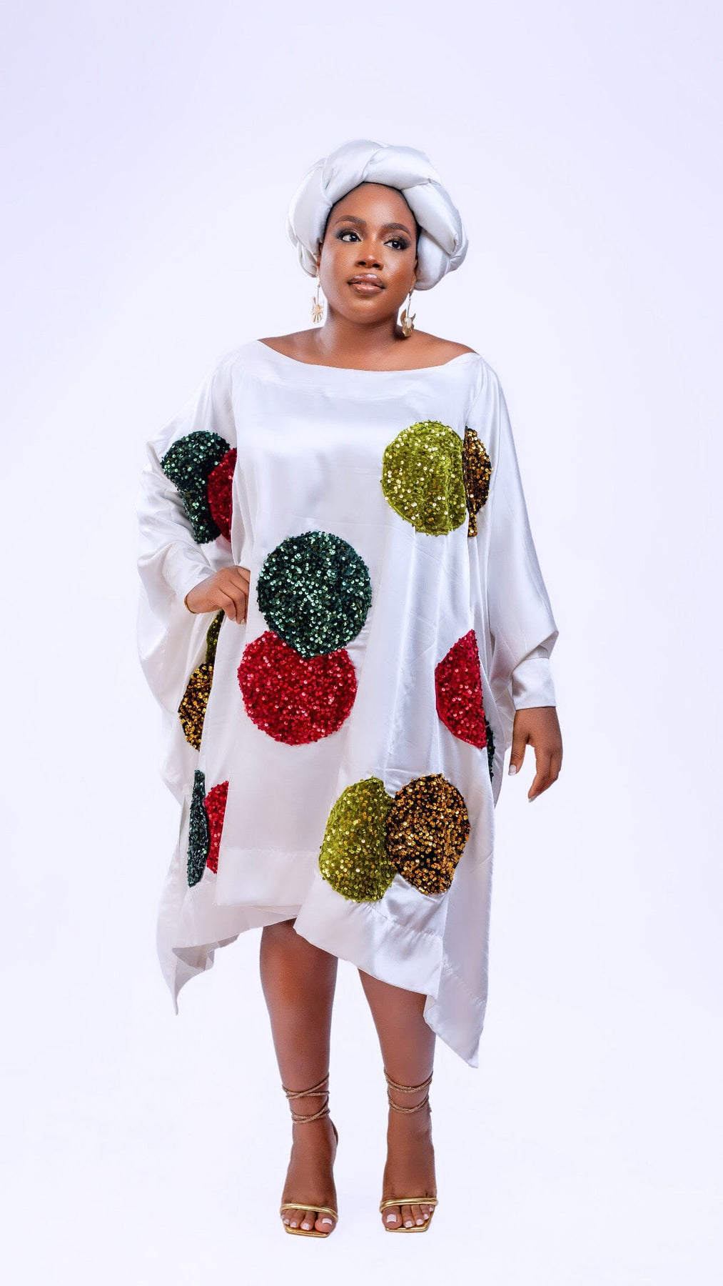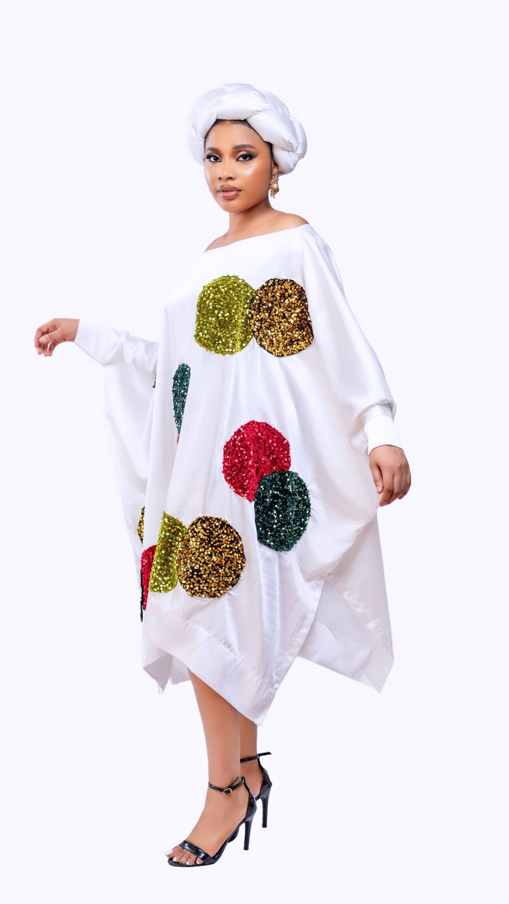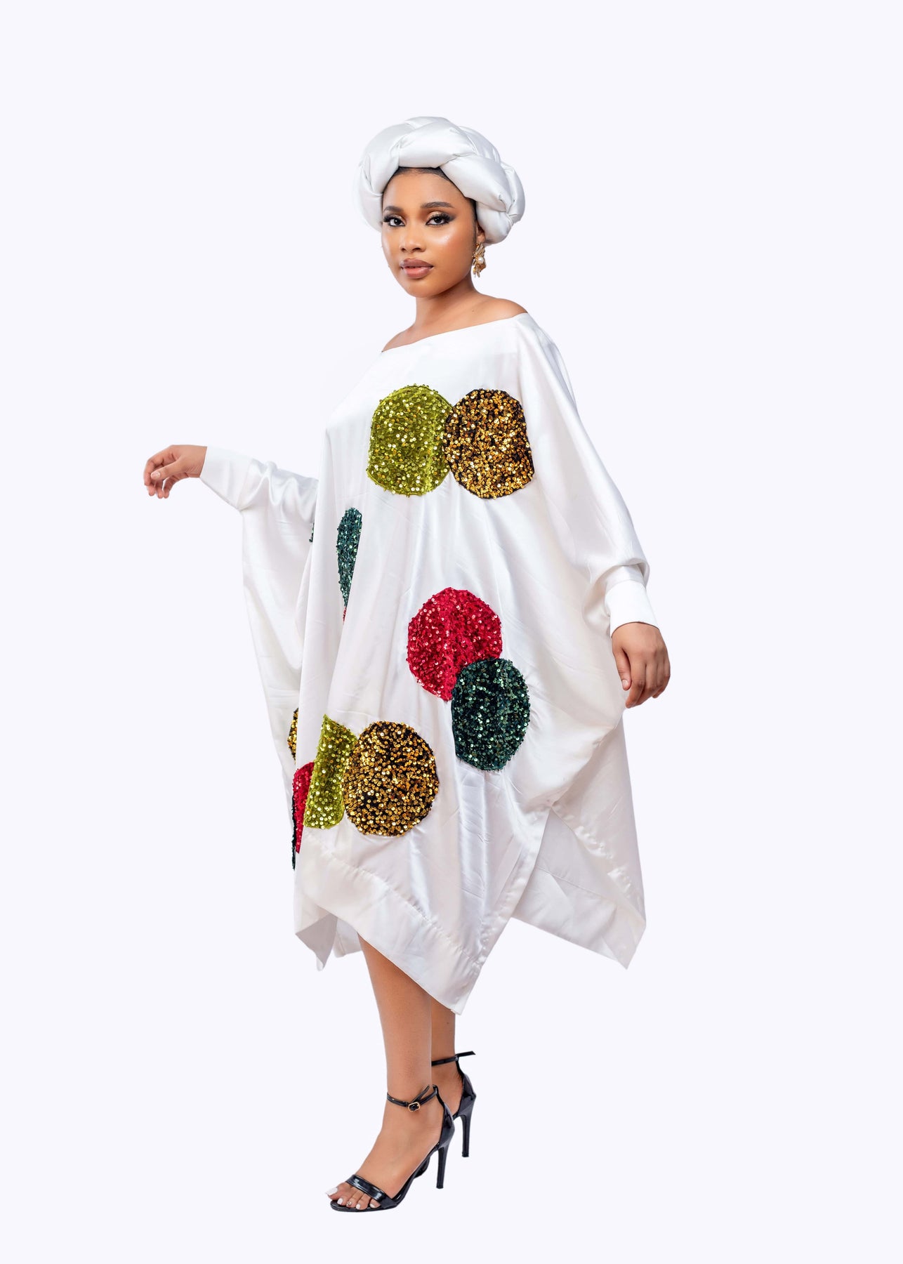 Joromi Mikado Silk Boubou kaftan dress (White)