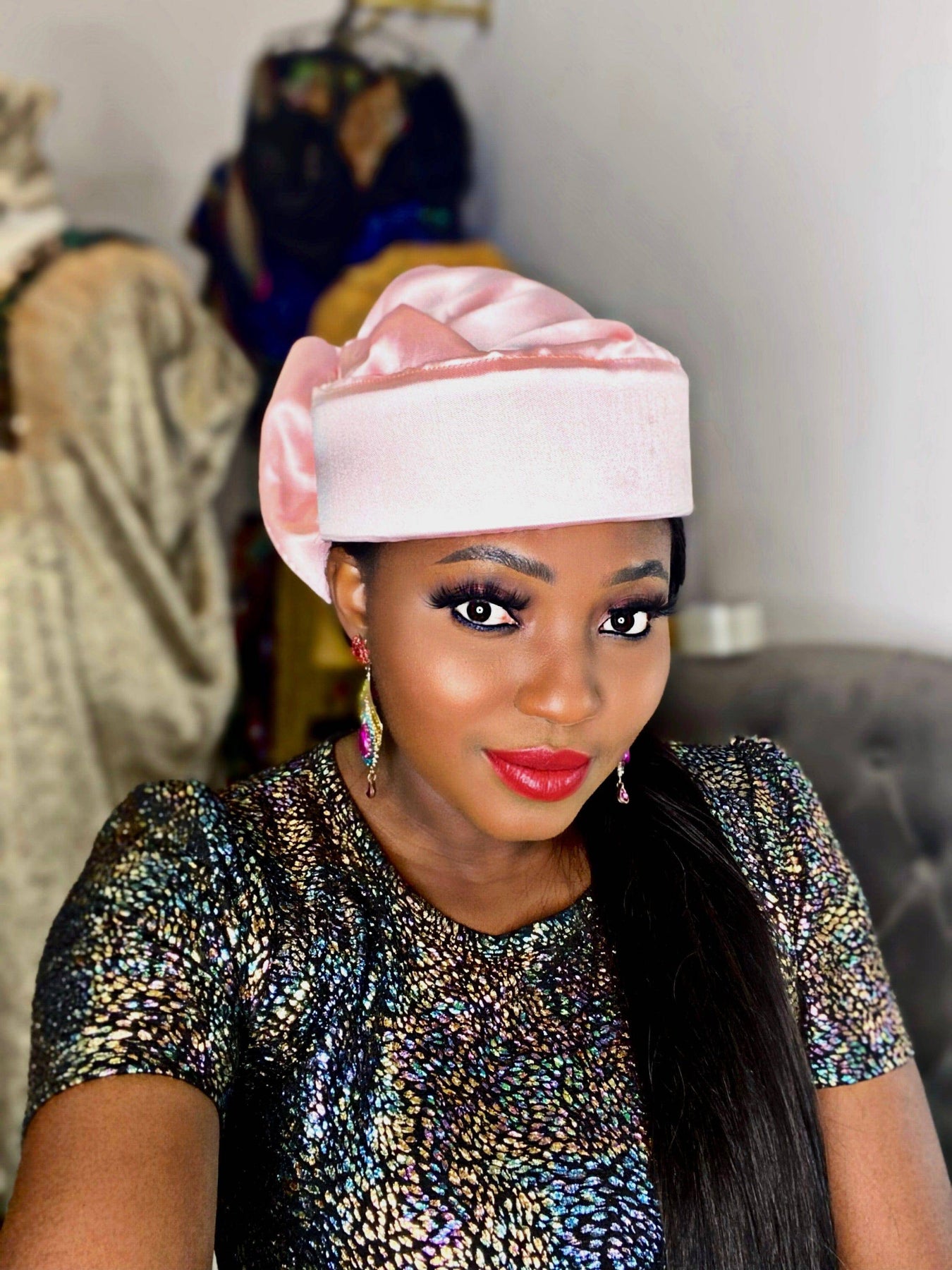Omoge Twist Sequin Cap (Black)- Women's African Cap