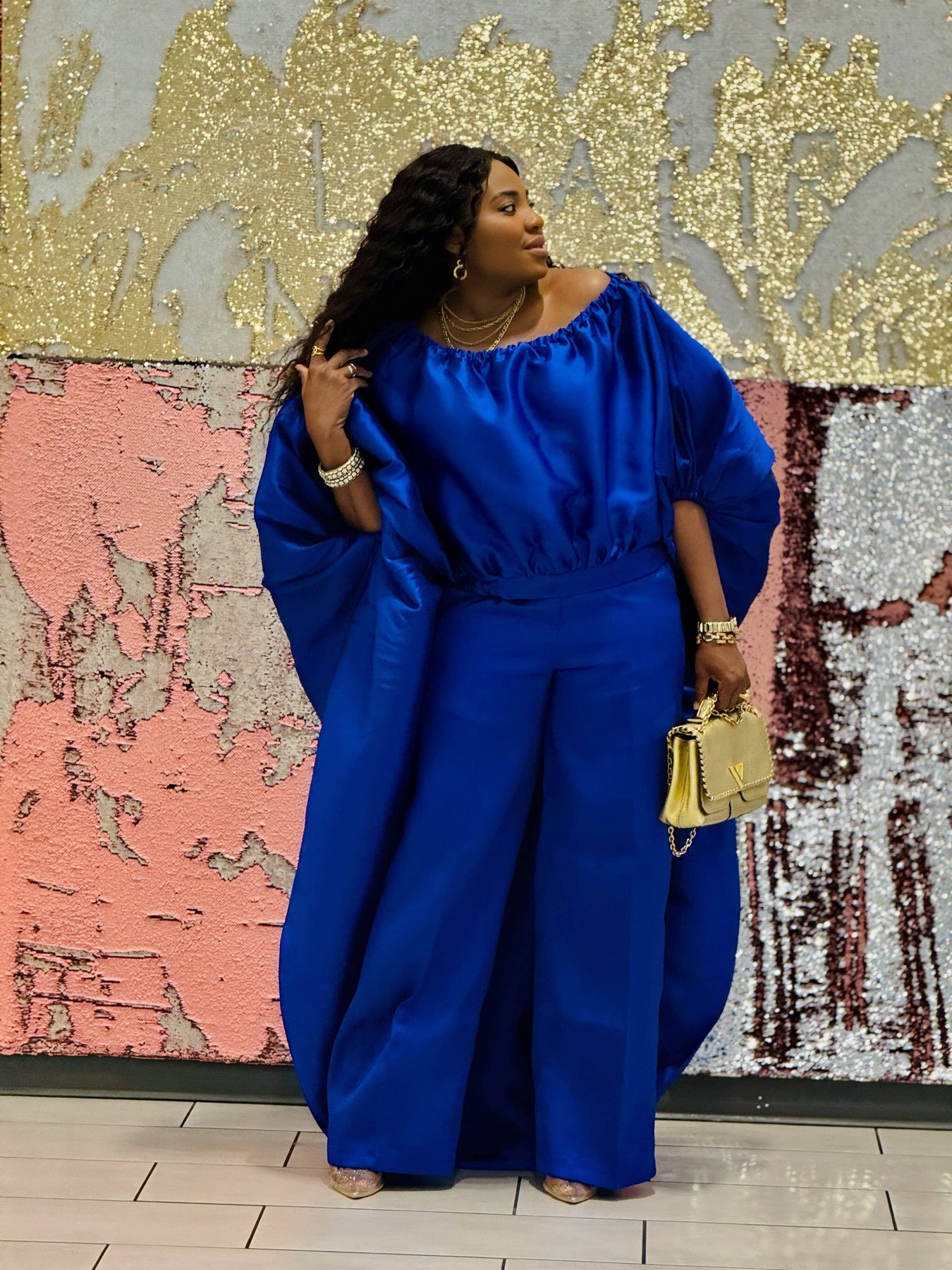 2- piece Kese neon cape high low and wide leg pant set